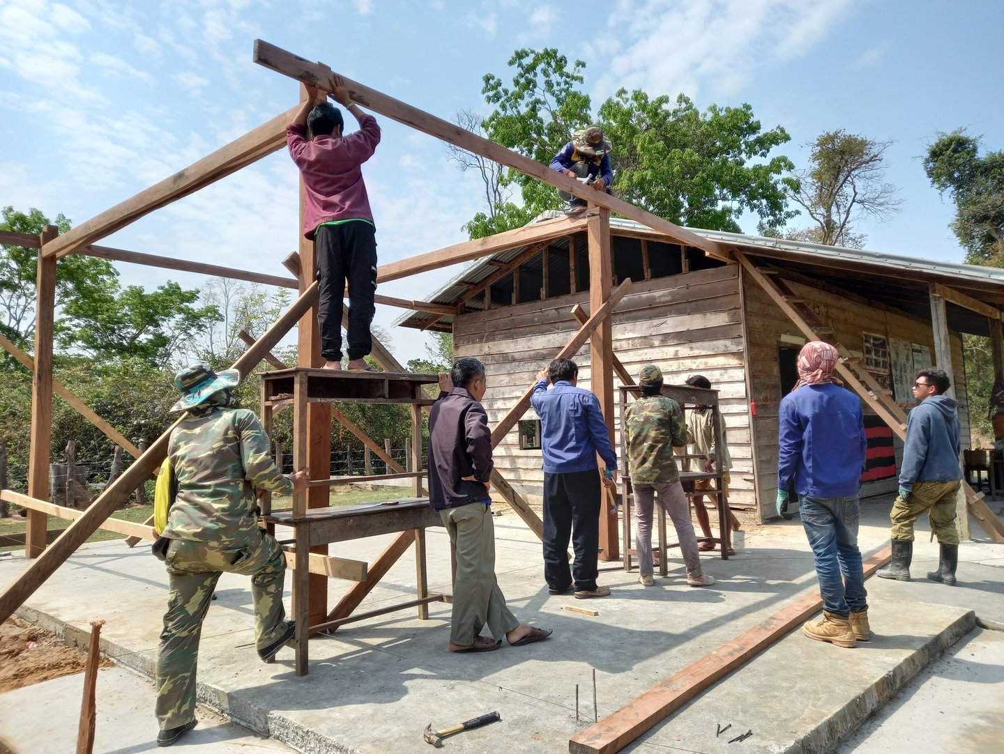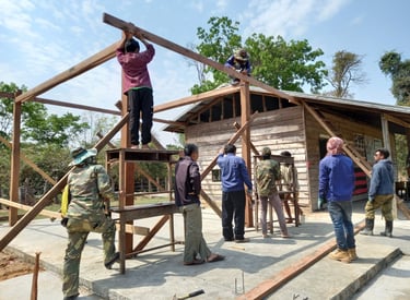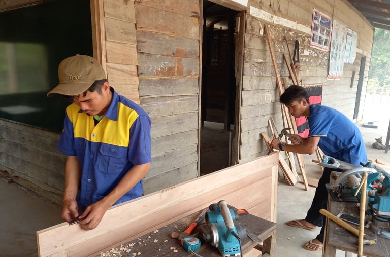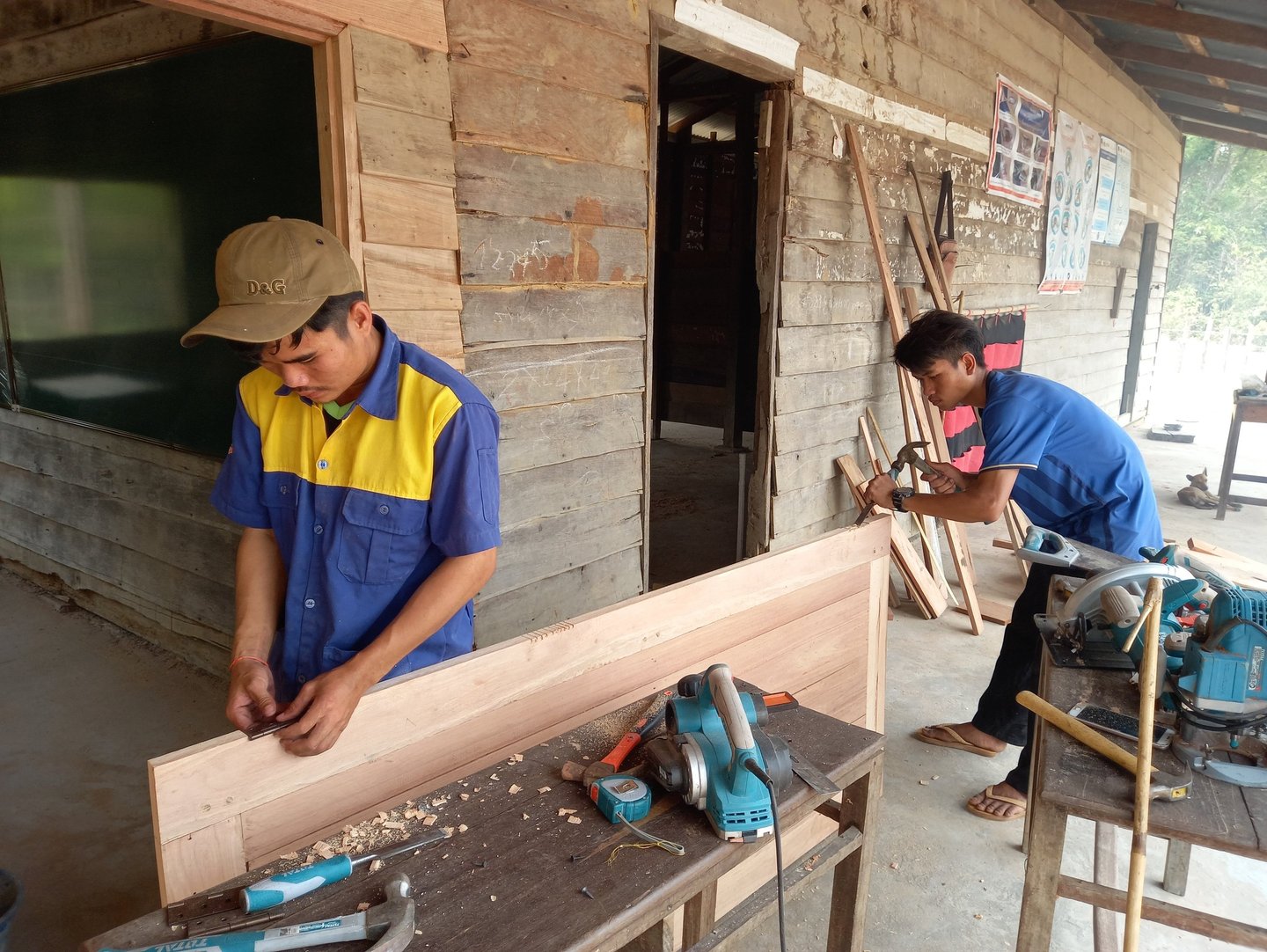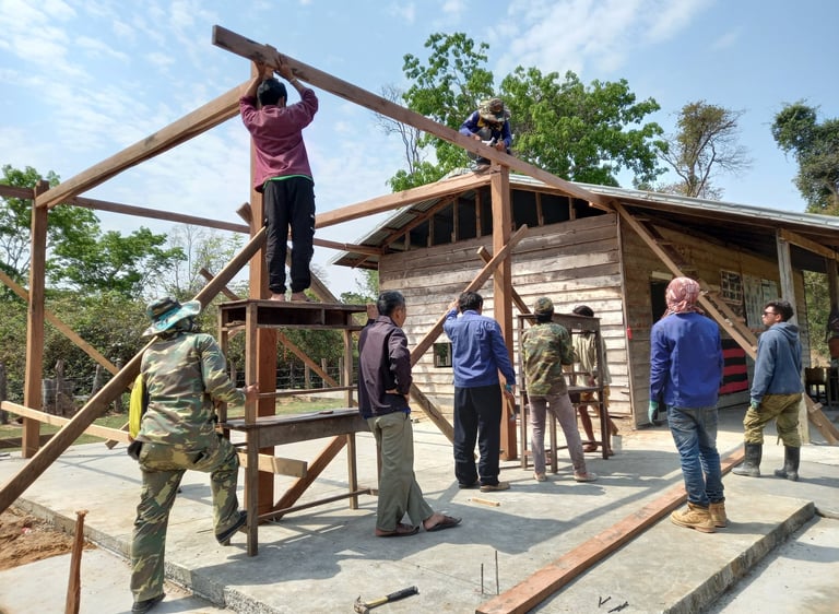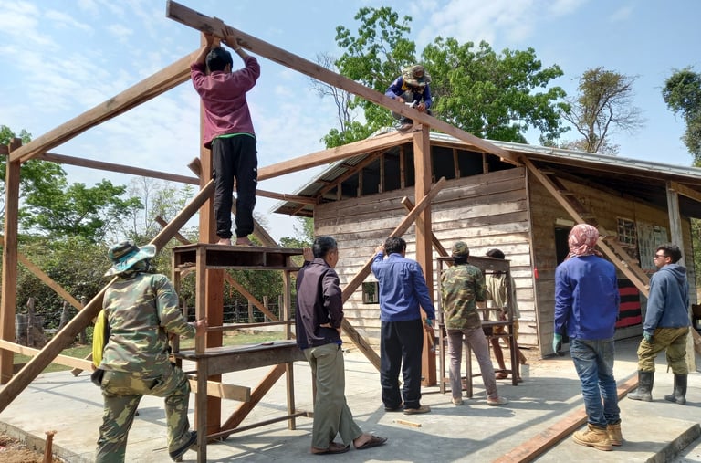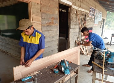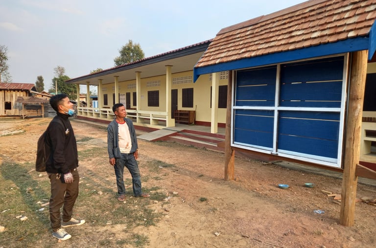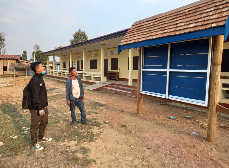 This activity was implemented together with partners such as: teachers-students from technical-vocational college in Savannakhet province and parents of students who participated, such as painting the school sign with letters, building a barbed fence around the school, building a flag pole, bulletin information board, bookcase, building a new bathroom, building an additional wooden classroom, providing a new blackboard, demolishing the old school and moving to build a new school using old wood and new wood from the contribution of the village and drilling water bore system.