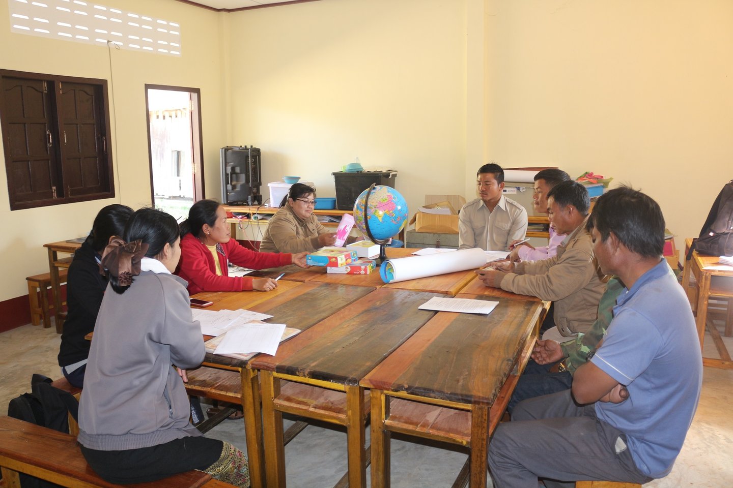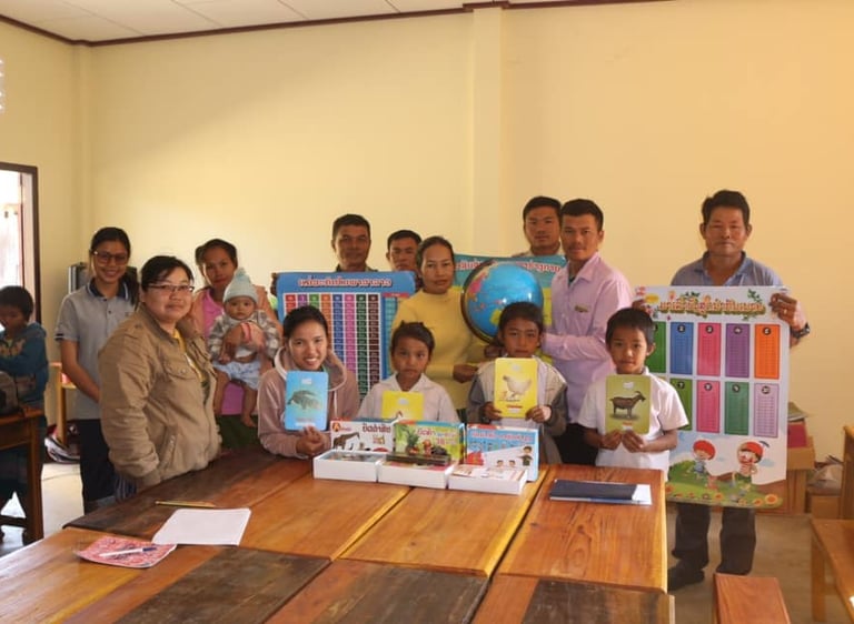 Project have supported teaching-learning materials which included wooden ruler (long, right triangle, equal triangle and angle), abacus, Lao alphabet cards, English alphabet cards, vowel cards, number cards, animal name cards, occupation name cards, fruit name cards, Lao spelling tone posters, human anatomy wording poster (Lao/English), recipes multiplication formula poster, vowel poster in Lao language, map of Laos, world map and simulated earth unit. The direct beneficiaries are 38 teachers and 609 students.