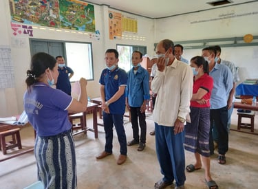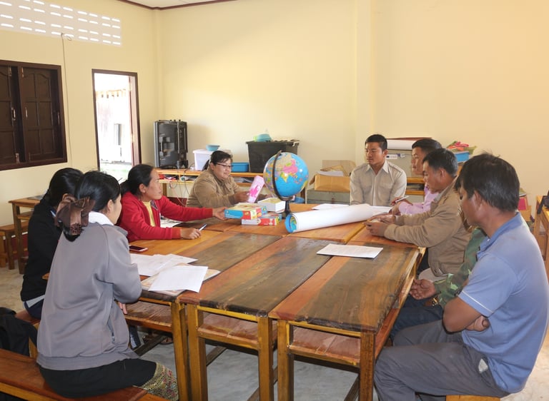 The village meeting was held every year before the school year. In the first year, it was divided into 4 groups. Determined to gather neighboring villages and meet in the same place to jointly plan the development of community education. The participants were from the Village Education Development Board, Parents Association, teachers in 12 target primary schools. The details are as follows: Pha Nomphon complete elementary school with 3 participating villages: Phakkada, Phanomphon and Tat Khadeng; Khantakien Complete Primary School has 4 participating villages: Kham Phou, Hong Muang, Bang Bad Kok and Kantakien. Kangtiew Complete Primary School has 4 participating villages: Tabtao, Dongkhouang, Kangbone and Kangtiew and Kangthong Complete elementary school. The meeting was to discuss about educational issues, find out the solutions and plan for the development of their own village schools. Through the meeting, it was seen that the village development committee and the parents of the students have deeply understanding on the importance of the village school development.