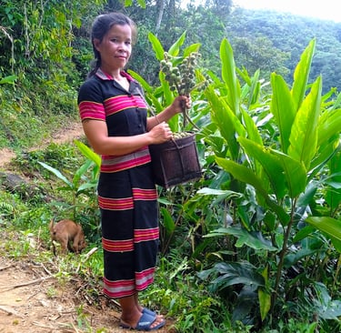 Laos has a wealth of natural resources, such as rice, fish, and various terrestrial and aquatic resources, especially forest products, which are distributed across different provinces and provide habitats for wildlife and livelihoods for villagers. However, due to population growth and resource depletion, many stakeholders are concerned and have implemented measures to ensure more sustainable management. One example is the Programme to promote the establishment of protected areas and the sustainable use of natural resources (NTFP), which supports and empowers the target group to participate in the conservation and management of forests in a sustainable manner. Mrs. Khamdaphon Vilalery, 30 years old, from Daktaocnoy Village, DakChueng District, Sekong Province, is one of the beneficiaries of this programme. She has a family of five: herself, her husband who is a soldier, and three children. She engages in farming, gardening, and taking care of her family and children. She also serves on the committee of the management unit of the conservation area and the utilization area of forest products in her village.