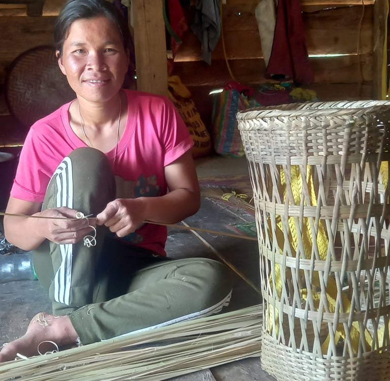 Laos has a wealth of natural resources, such as rice, fish, and various terrestrial and aquatic resources, especially forest products, which are distributed across different provinces and provide habitats for wildlife and livelihoods for villagers. However, due to population growth and resource depletion, many stakeholders are concerned and have implemented measures to ensure more sustainable management. One example is the Programme to promote the establishment of protected areas and the sustainable use of natural resources (NTFP), which supports and empowers the target group to participate in the conservation and management of forests in a sustainable manner. Mrs. Khamdaphon Vilalery, 30 years old, from Daktaocnoy Village, DakChueng District, Sekong Province, is one of the beneficiaries of this programme. She has a family of five: herself, her husband who is a soldier, and three children. She engages in farming, gardening, and taking care of her family and children. She also serves on the committee of the management unit of the conservation area and the utilization area of forest products in her village.